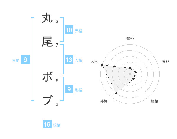 丸尾 ボブさんを姓名の画数から五運を鑑定