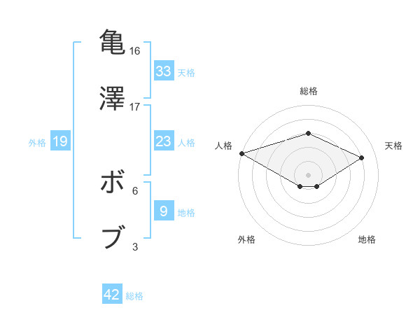 亀澤 ボブさんを姓名の画数から五運を鑑定
