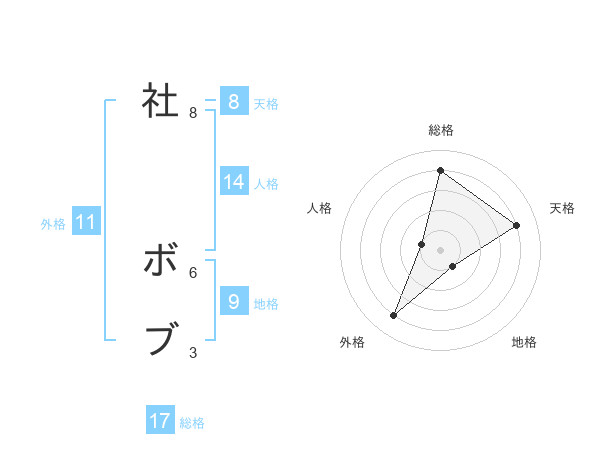 社 ボブさんの総格は17画の4点!