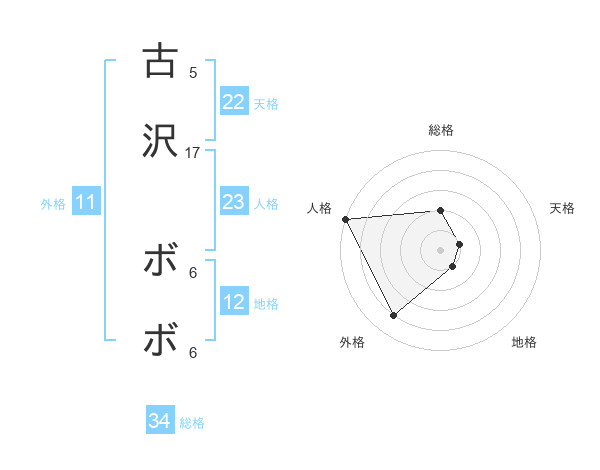 古沢 ボボさんを姓名の画数から五運を鑑定