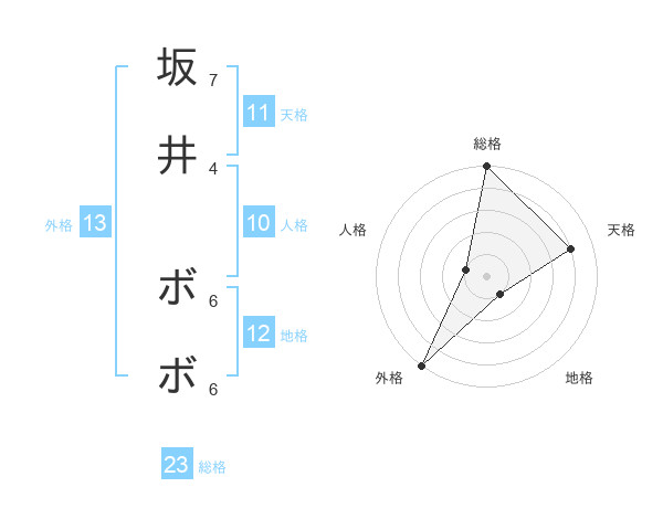坂井 ボボさんを姓名の画数から五運を鑑定