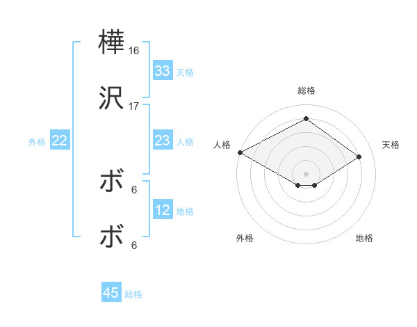 樺沢 ボボさんを姓名の画数から五運を鑑定