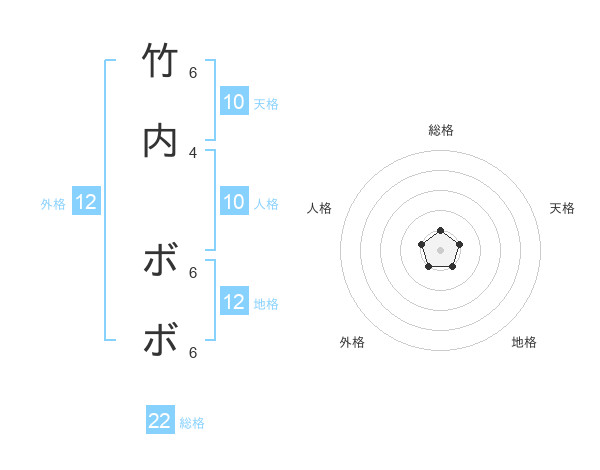 竹内 ボボさんを姓名の画数から五運を鑑定