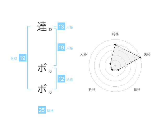 達 ボボさんの総格は25画の4点!