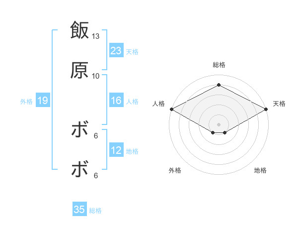 飯原 ボボさんを姓名の画数から五運を鑑定