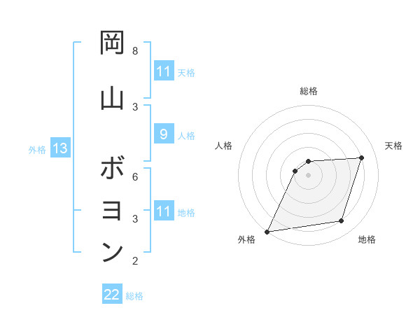 岡山 ボヨンさんを姓名の画数から五運を鑑定