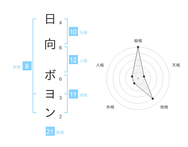 日向 ボヨンさんを姓名の画数から五運を鑑定