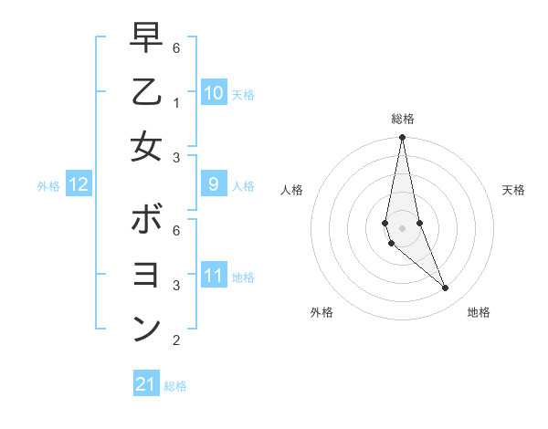 早乙女 ボヨンさんを姓名の画数から五運を鑑定