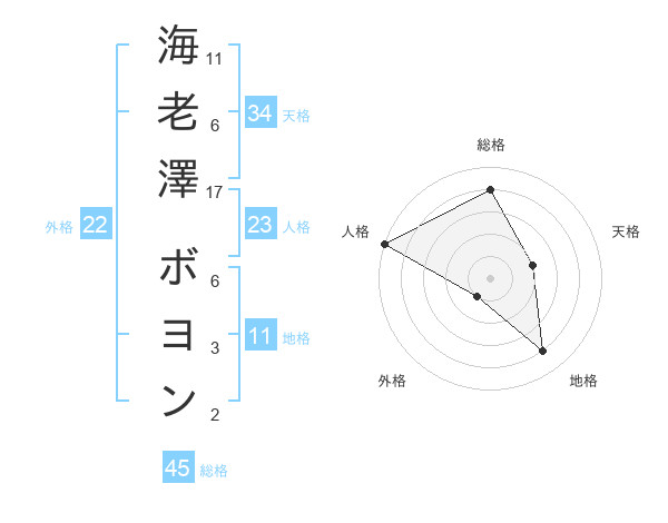 海老澤 ボヨンさんを姓名の画数から五運を鑑定