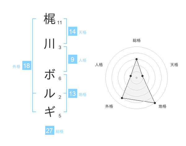 梶川 ボルギさんの総格は27画の3点!