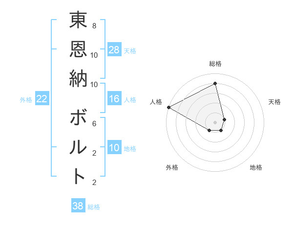 東恩納 ボルトさんを姓名の画数から五運を鑑定