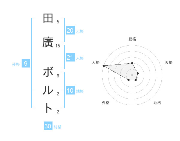 田廣 ボルトさんを姓名の画数から五運を鑑定