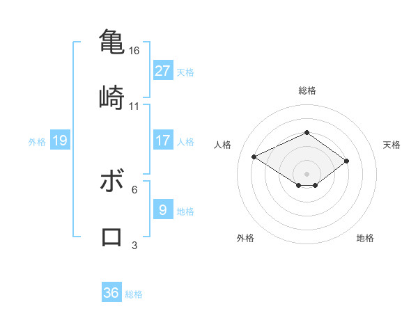 亀崎 ボロさんを姓名の画数から五運を鑑定