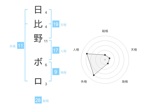 日比野 ボロさんを姓名の画数から五運を鑑定