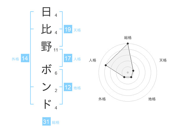 日比野 ボンドさんを姓名の画数から五運を鑑定