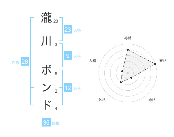 瀧川 ボンドさんを姓名の画数から五運を鑑定