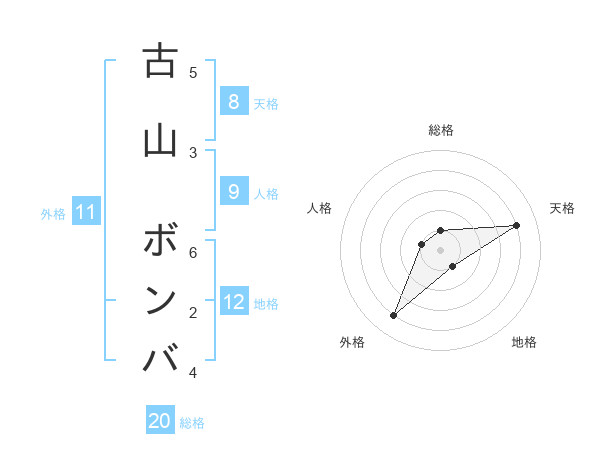 古山 ボンバさんを姓名の画数から五運を鑑定