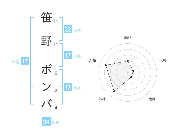 笹野 ボンバさんを姓名の画数から五運を鑑定