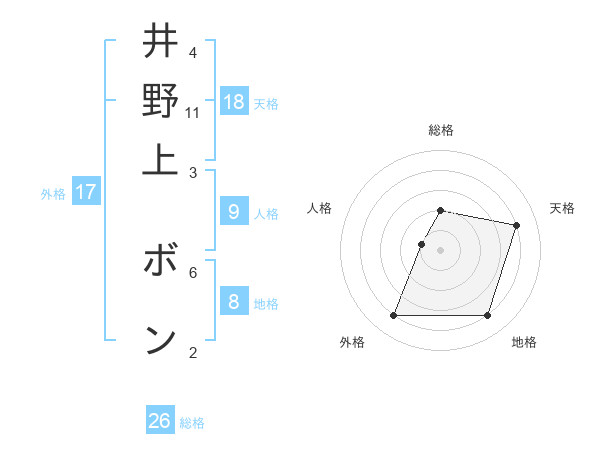 井野上 ボンさんを姓名の画数から五運を鑑定