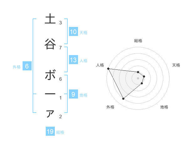 土谷 ボーァさんを姓名の画数から五運を鑑定