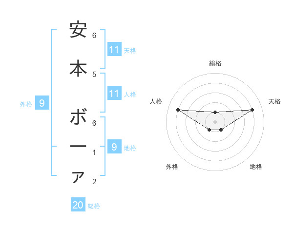 安本 ボーァさんの人格は11画の4点!