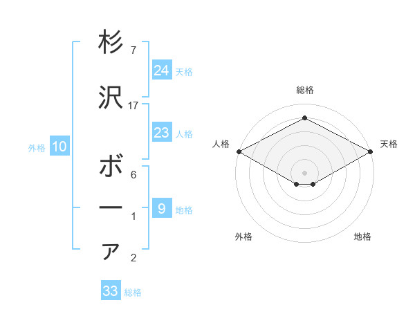 杉沢 ボーァさんの天格は24画の5点!