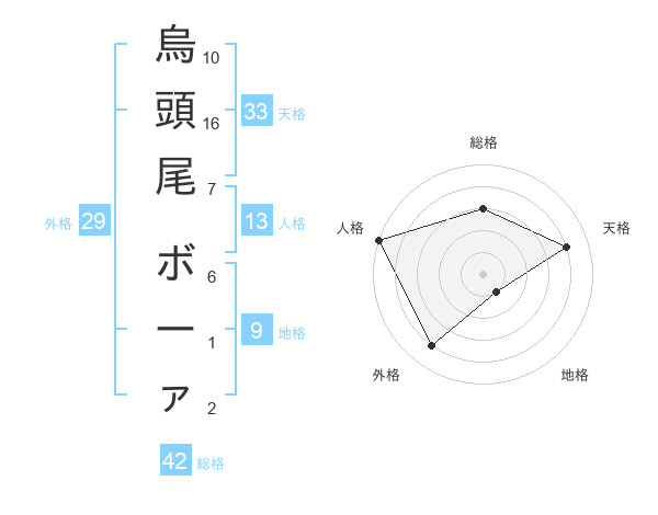 烏頭尾 ボーァさんの総格は42画の3点!