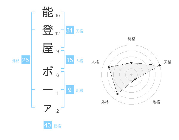 能登屋 ボーァさんの人格は15画の4点!