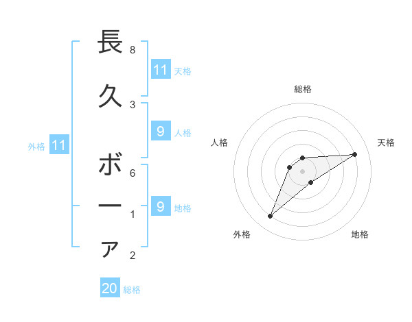 長久 ボーァさんの総格は20画の1点!