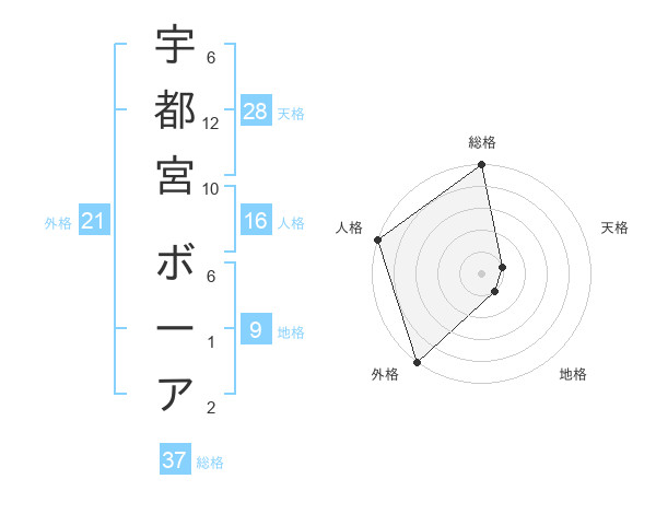 宇都宮 ボーアさんの総格は37画の5点!