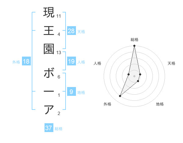 現王園 ボーアさんを姓名の画数から五運を鑑定