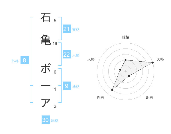 石亀 ボーアさんの天格は21画の5点!