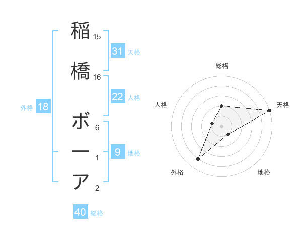 稲橋 ボーアさんの天格は31画の5点!