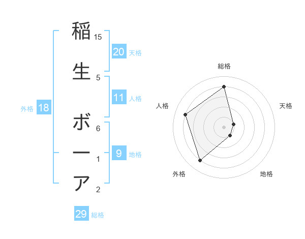 稲生 ボーアさんを姓名の画数から五運を鑑定
