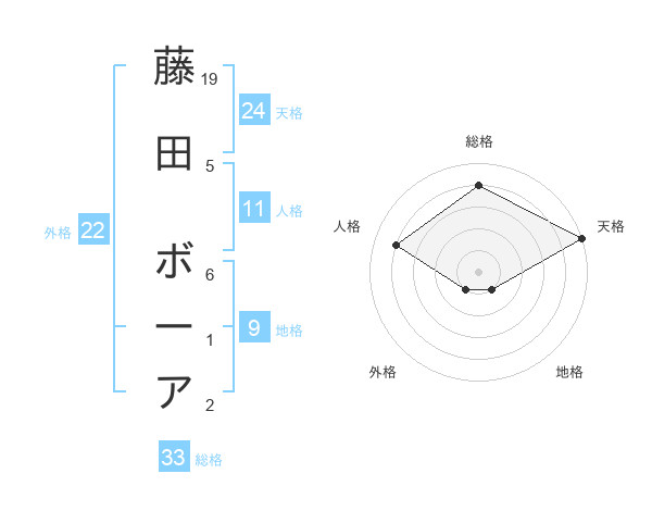 藤田 ボーアさんを姓名の画数から五運を鑑定