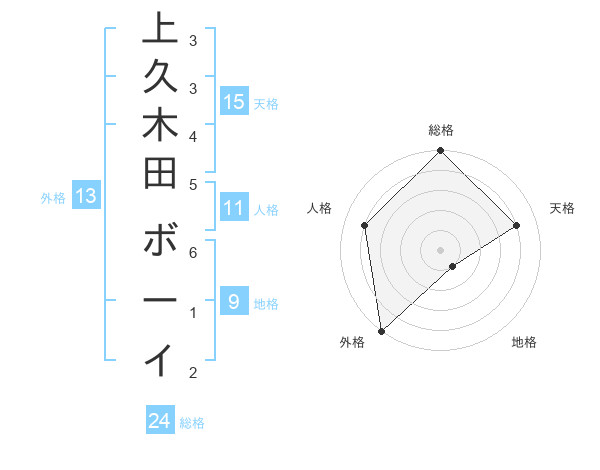 上久木田 ボーイさんの総格は24画の5点!