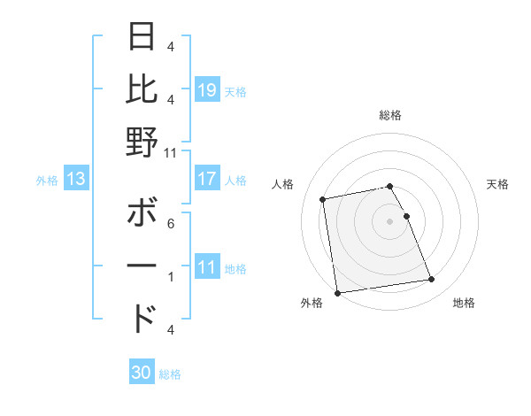 日比野 ボードさんを姓名の画数から五運を鑑定
