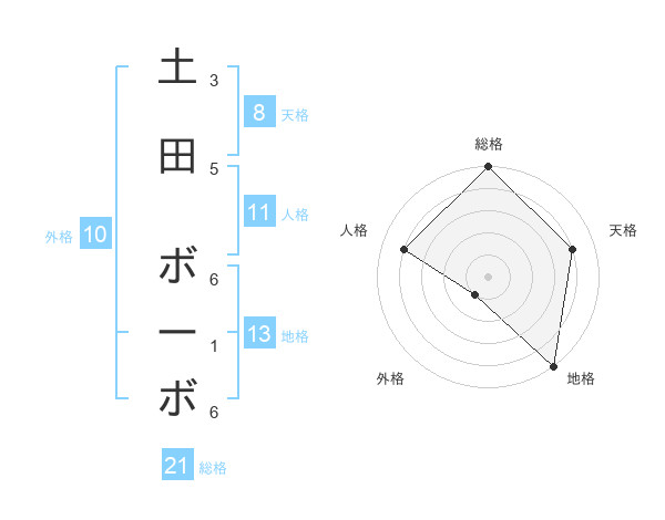 土田 ボーボさんを姓名の画数から五運を鑑定