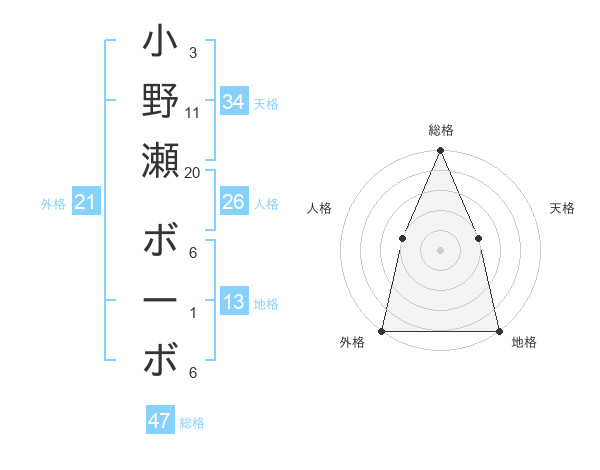 小野瀬 ボーボさんを姓名の画数から五運を鑑定