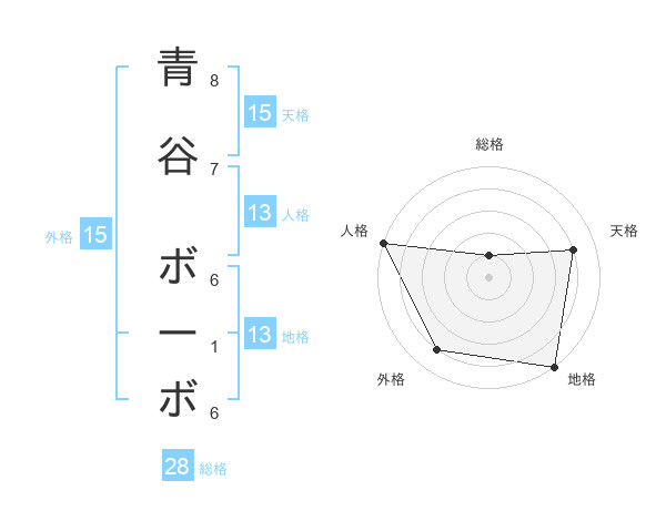 青谷 ボーボさんの総格は28画の1点!