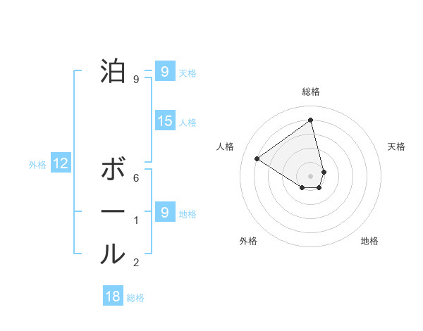 泊 ボールさんの総格は18画の4点!