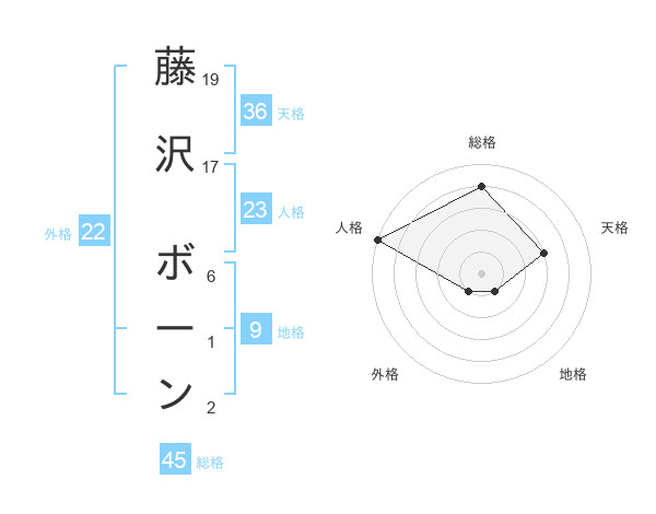 藤沢 ボーンさんの総格は45画の4点!