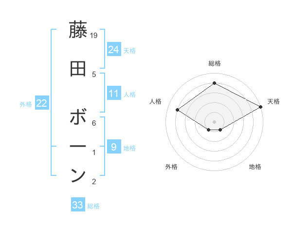 藤田 ボーンさんを姓名の画数から五運を鑑定