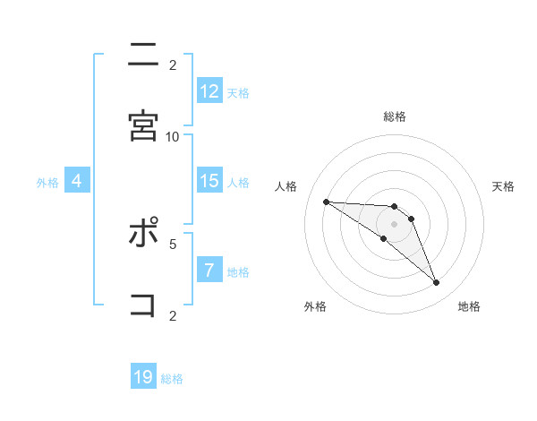 二宮 ポコさんの総格は19画の1点!