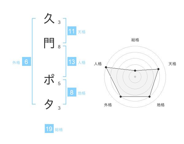 家系が持つ宿命的な運勢を表します。祖先から受け継いだ苗字ですので自分の力が及びません。家柄を象徴します。