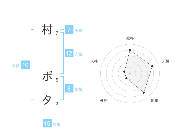 村 ポタさんの総格は15画の4点!