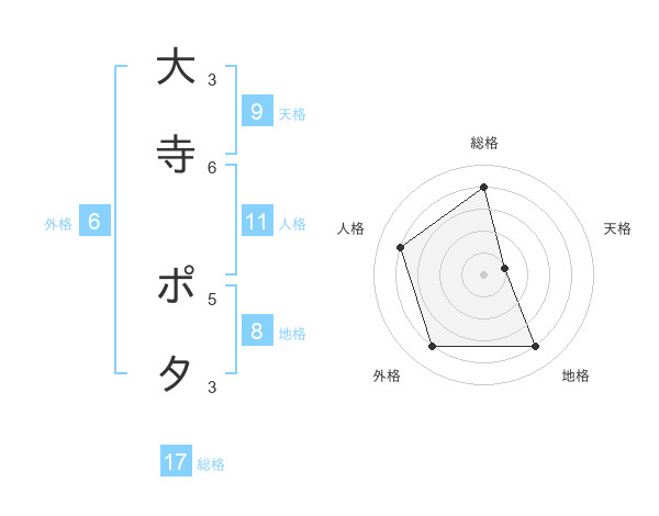 大寺 ポタさんの総格は17画の4点!