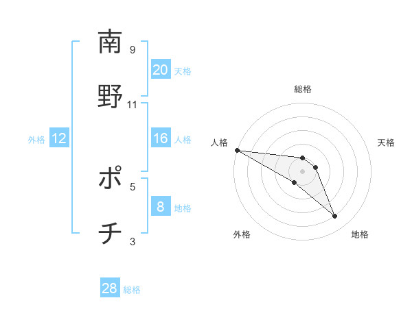 南野 ポチさんの総格は28画の1点!