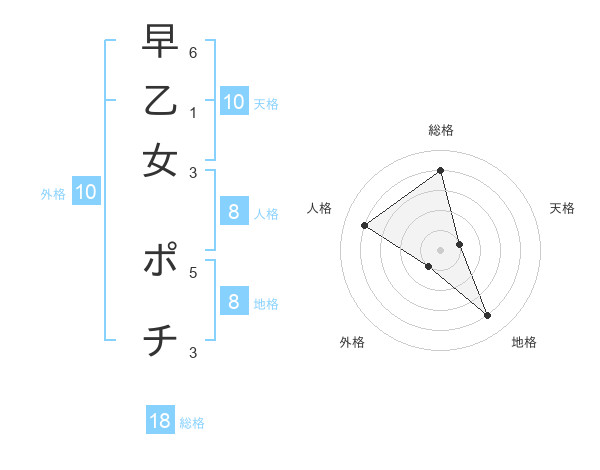 早乙女 ポチさんを姓名の画数から五運を鑑定