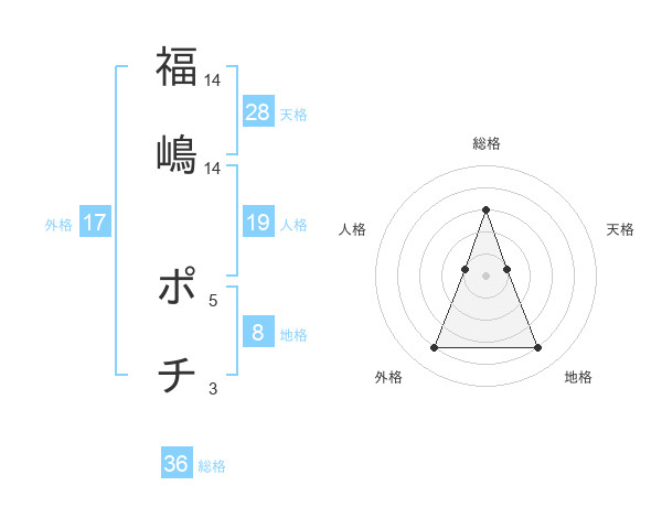 福嶋 ポチさんを姓名の画数から五運を鑑定